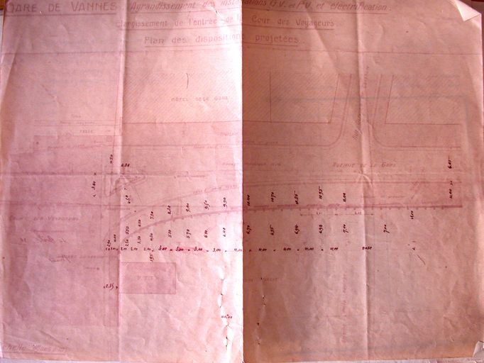 Travaux d'agrandissement de la cour de voyageurs, plan, 16 avril 1931. Archives de la SNCF, groupe études et bâtiments, Rennes.Immatriculation