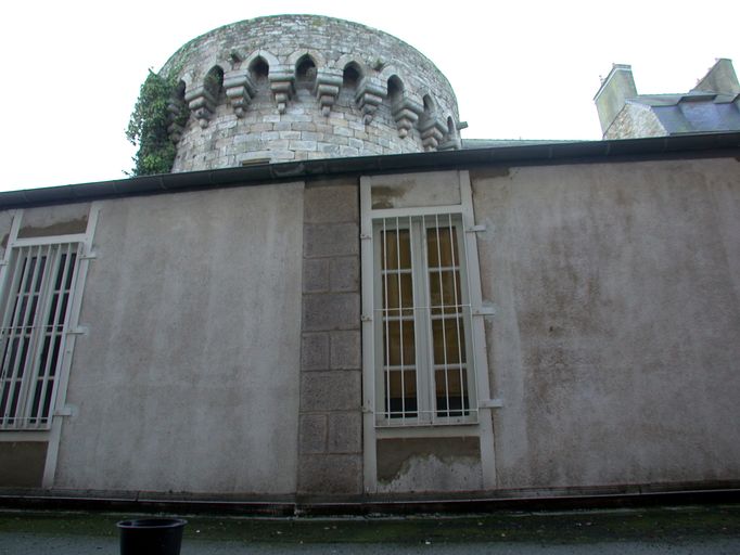 Dépendance postérieure : fenêtre de l'étage avec aperçu du sommet de la tour des filles.Immatriculation
