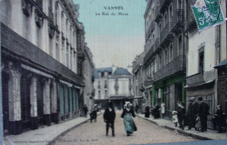 Vue du bas de la rue du Mené. Carte postale ancienne. AM Vannes 7Fi.Immatriculation
