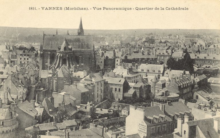 Vue panoramique : quartier de la cathédrale. Carte postale ancienne. Collection Vassellier, Nantes. Fonds privé.Immatriculation