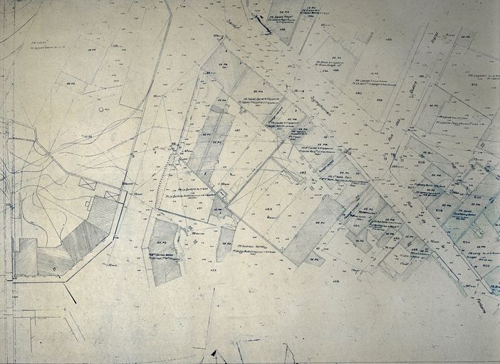 Plan parcellaire du tracé de l'ilot Saint-Symphorien, sans date. AD Morbihan 1F426.Immatriculation