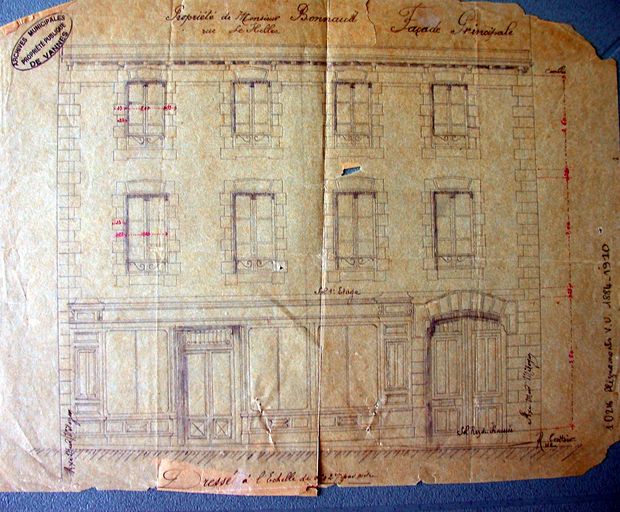 Projet de façade pour monsieur Bonnaud rue Léhélec à Vannes, élévation sur rue, sans date. AM Vannes 1O216 1884-1910.Immatriculation