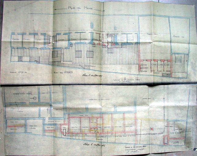 Projet d'agrandissement de l'hôtel, modification : plan de l'étage. Dessin par Joseph Caubert de Cléry pour Mme Delory, 29 janvier 1925. AM Vannes.Immatriculation
