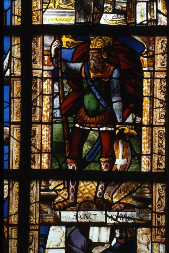 Verrière 1, détail du soldat et date 1564Immatriculation