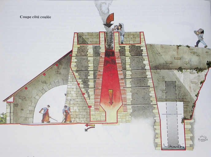 Le haut fourneau, coupe (dessin J.-P. Arcile).Immatriculation