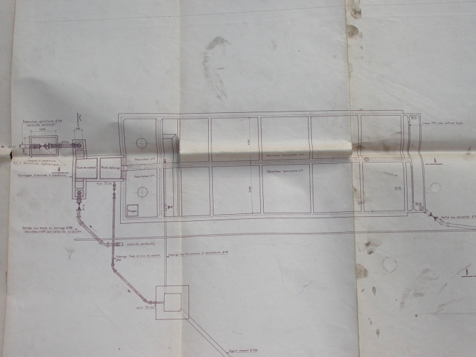 Installations extérieures : décanteur et floculateur, plan (1969).Immatriculation