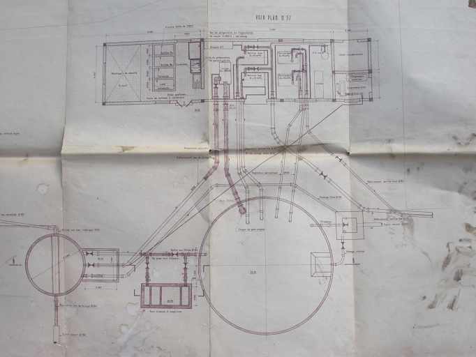 Station de pompage reliée à la citerne des eaux traitées par des conduites souterraines, plan (1969).Immatriculation
