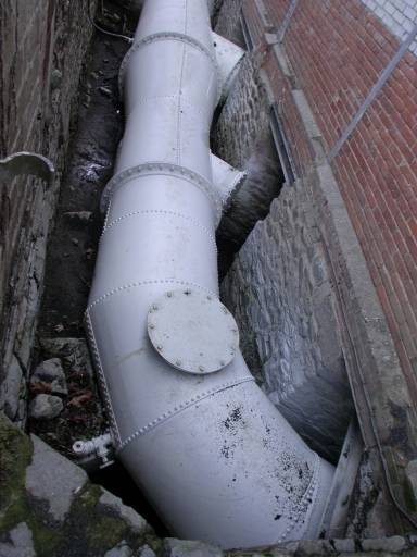 Détail de la conduite forcée avec répartiteur à trois branches dont un est hors d'usage.Immatriculation