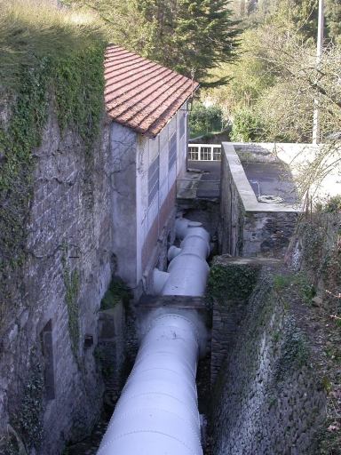 La salle des machines et la conduite forcée qui amène l'eau aux turbines.Immatriculation