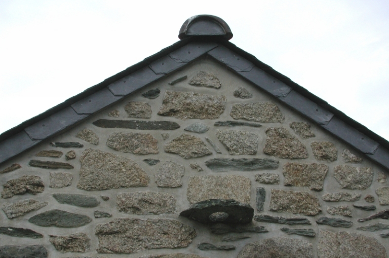 Faîtage du pignon sud : arrdoises en schiste percée pour recevoir le mât de pavillon des douanesImmatriculation