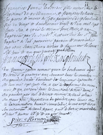 Manuscrit attestant le décès de Yvon Le Boubennec, âgé de 14 ans, le 12 septembre 1710 au moulin du YaudetImmatriculation