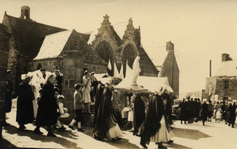 La procession religieuse sort de la chapelle Notre-Dame-du-Yaudet avec un ex-votoImmatriculation