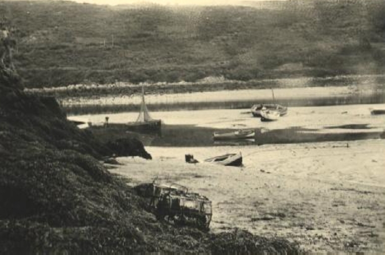 Le bout du quai du Yaudet avec un sardinier à l'échouage, faisant sécher ses filetsImmatriculation