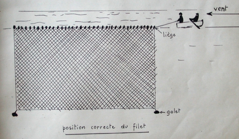 Position correcte du filet en pêche (dessin de Yves Audren)Immatriculation