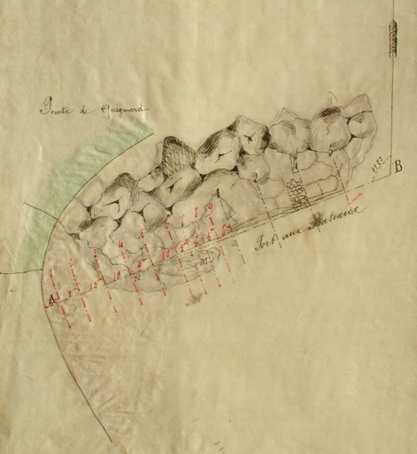 Construction de la cale inférieure, dite cale basse : profil en long selon la ligne AB, 1873 (AD 22)Immatriculation