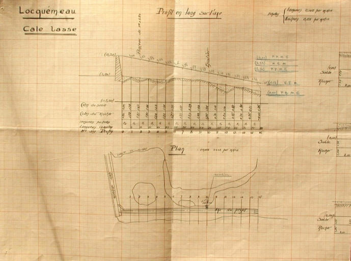 Plan de 1931 : profil en long sur l'axe, allongement de la cale basse (AD 22)Immatriculation