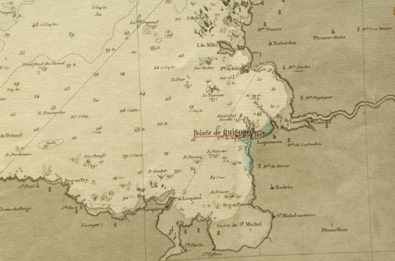 Plan de la baie de Lannion et situation du port de Quignard en 1882 : extrait carte marine du SHOM (AD 22)Immatriculation