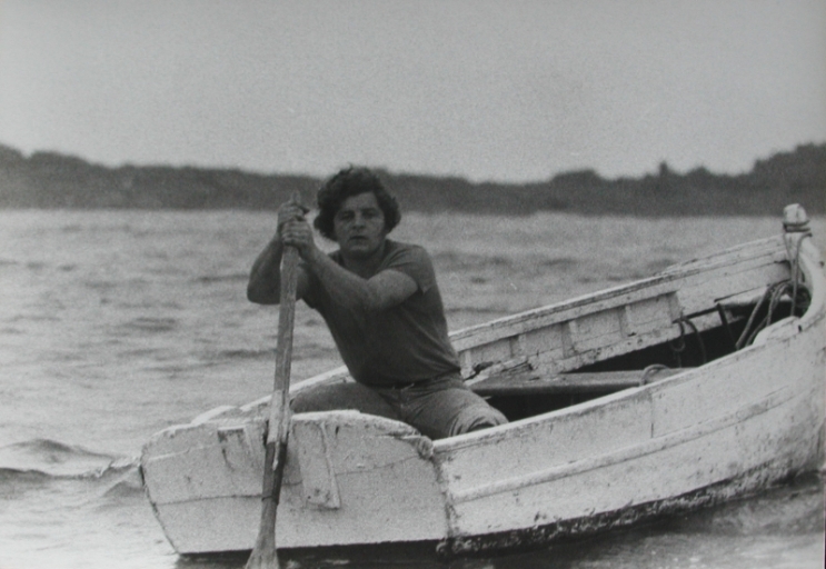 Concours de godille dans les années 1970 à bord de canots sardiniers : plusieurs positions sont possiblesImmatriculation