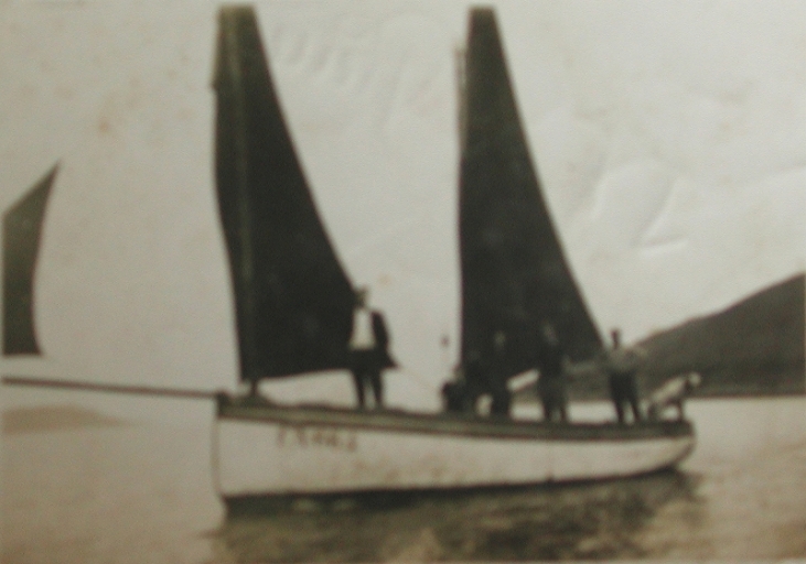 Le flambart Marcel-Micheline arbore ses voiles tannées à son neuvage et son immatriculation : LA 446Immatriculation