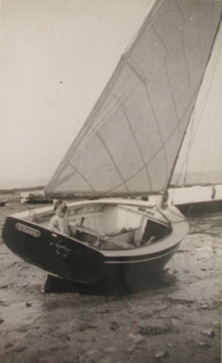Canot de plaisance Yoan, dériveur avec un gréement houari, grande voile lattée, très apiquéeImmatriculation