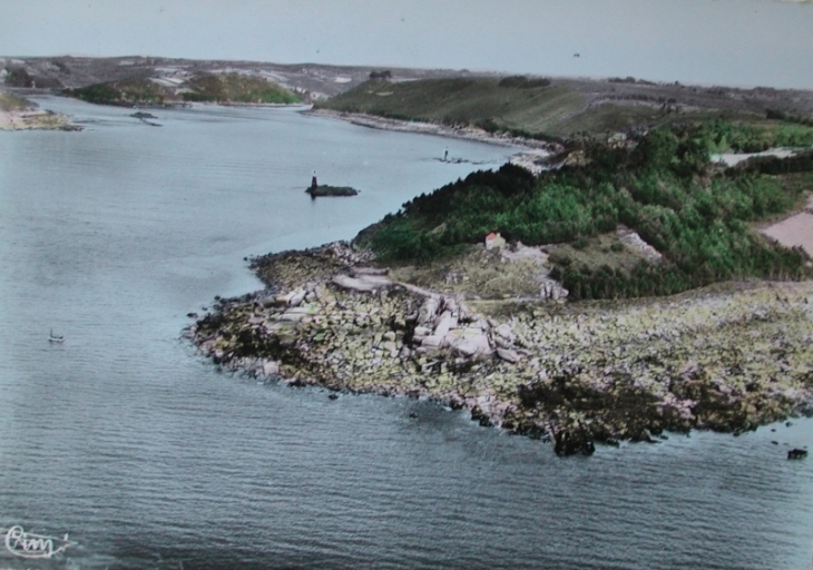 La pointe du Dourven plantée de résineux et la petite maison, à l'entrée du Yaudet, avant son achat par le DépartementImmatriculation