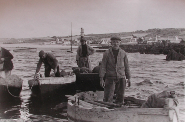 Georges-Auguste Levier débarque d'une marée à la pêche avec son annexe, à ses côtés Yvon Ballier et Marcel HubertImmatriculation