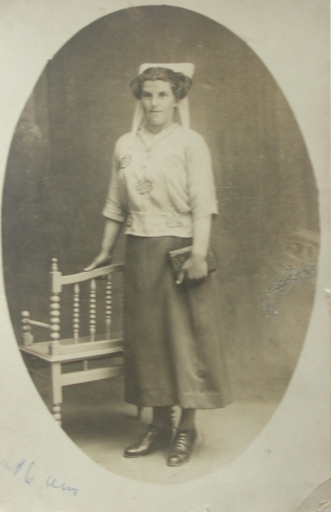 Trédrez-Locquémeau. Germaine Cabel, l'actuelle doyenne de Trédrez (98 ans aujourd'hui), en coiffe à cornette du Trégor à l'âge de 16 ans.Immatriculation