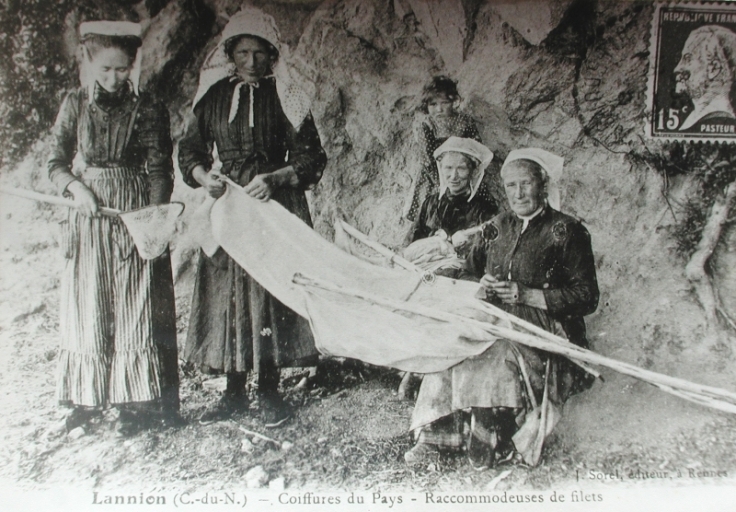 Pêcheuses de m'nuse (appâts de frai de crevette) raccommodant leurs filetsImmatriculation