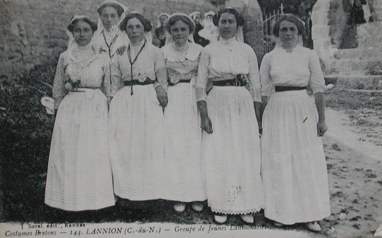Trédrez-Locquémeau. Groupe de jeunes femmes trégorroises en coiffe, avec leur toukenn vers 1917Immatriculation