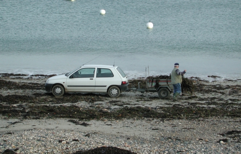 Ramassage du goémon d'épave sur la grève du port de LocquémeauImmatriculation