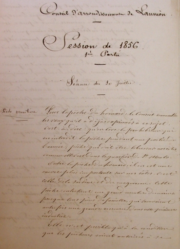 Extrait du projet de 1856 réglementant la pêche aux grands crustacés en baie de Lannion (homards)Immatriculation