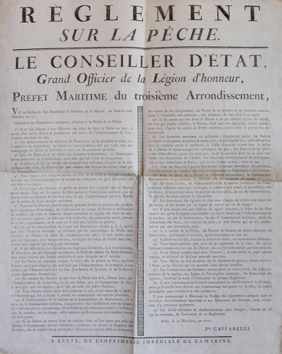 Réglementation sur la pêche de la sardine et du maquereau en baie de Lannion par le préfet maritime An XIII (1805)Immatriculation
