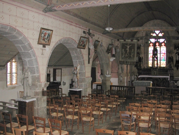 Vue générale de l'intérieur de l'église (vue prise depuis l'angle sud-ouest de la nef).Immatriculation