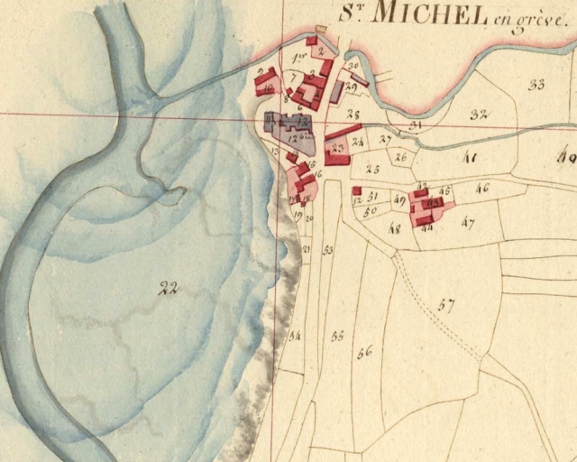 Le bourg, rive gauche du ruisseau de Kerdu. Extrait des plans cadastraux parcellaires de Saint-Michel-en-Grève, 1813 (AD 22).Immatriculation
