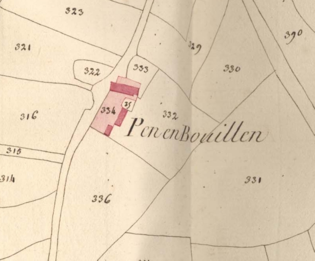 Extrait des plans cadastraux parcellaires de 1813 (AD 22).Immatriculation