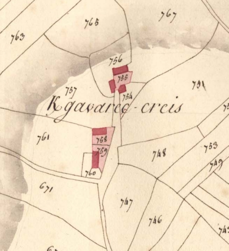 Extrait des plans cadastraux parcellaires de 1813 (AD 22).Immatriculation