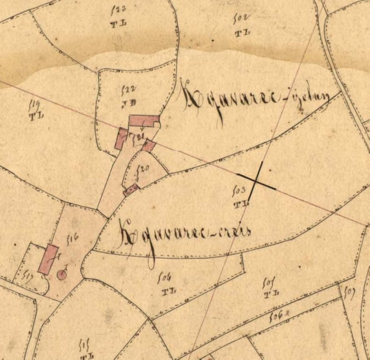 Extrait des plans cadastraux parcellaires de 1848 (AD 22).Immatriculation