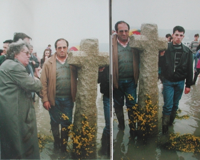 Inauguration de la nouvelle croix de la Lieue de Grève, en présence du maître carrier artisan Ernest Le MorvanImmatriculation