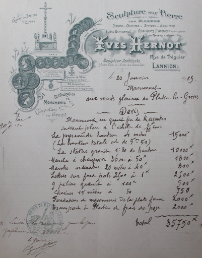 Devis du 20 janvier 1923 (AD 22)Immatriculation