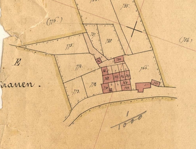 Extrait des plans cadastraux parcellaires de 1848 (AD 22)Immatriculation