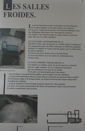 Les salles froides : le vestiaire (Atepoditerium), la salle froide (Frigidarium)Immatriculation