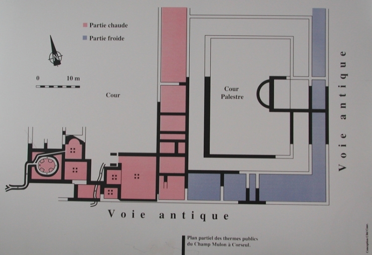 Plan partiel des thermes publics du champ Moulon à CorseulImmatriculation