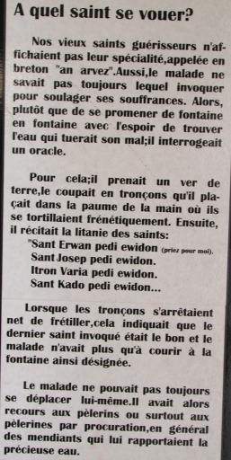 Texte sur les saints guérisseurs et leurs fontaines (Centre culturel)Immatriculation