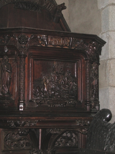 Détails du panneau central de la chaire à prêcherImmatriculation