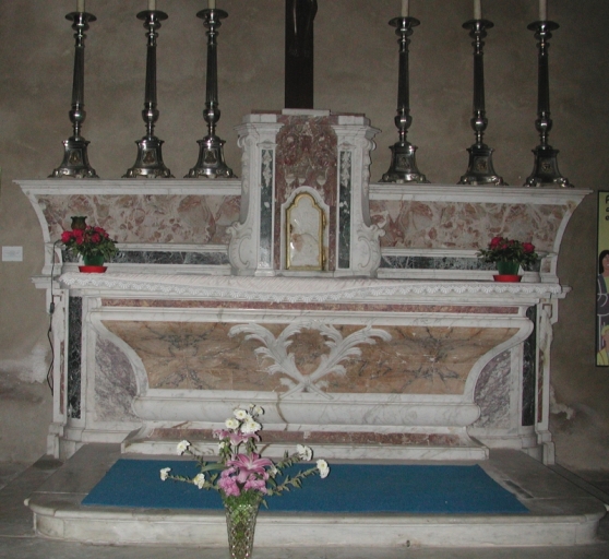 Vue générale de l'autel en marbre de l'église paroissiale (ISMH 1990)Immatriculation