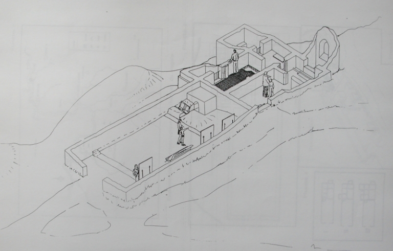 Dessin de l'ensemble des bâtiments du Hogolo (Matt May Michaël, 1993).Immatriculation