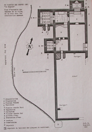 Plan d'ensemble des thermes de la villa : la cour avec les constructions annexes (J.P. Bardel, 1981)Immatriculation
