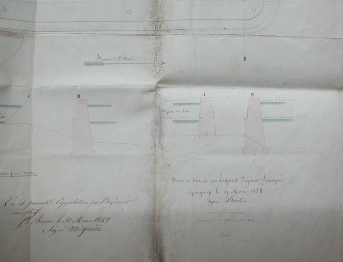 Plan et coupe du débarcadère en 1845 par Méguin, ingénieur (AD 22)Immatriculation