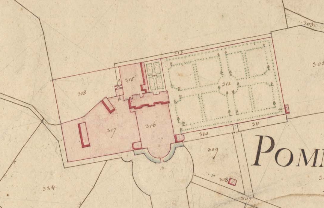 Extrait des plans cadastraux parcellaires de 1822 (AD 22). Plan au sol du château du PommorioImmatriculation