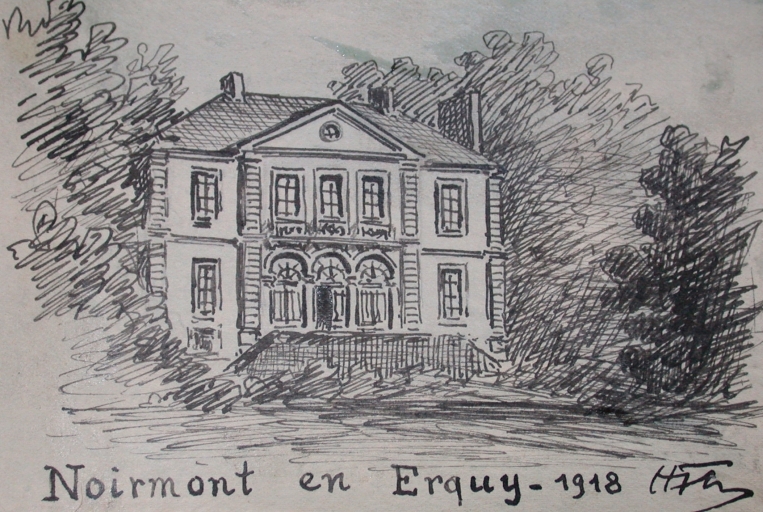 Le château de Noirmont en 1918 d'après un croquis du vicomte Henri Frotier de la Messelière (AD 22)Immatriculation
